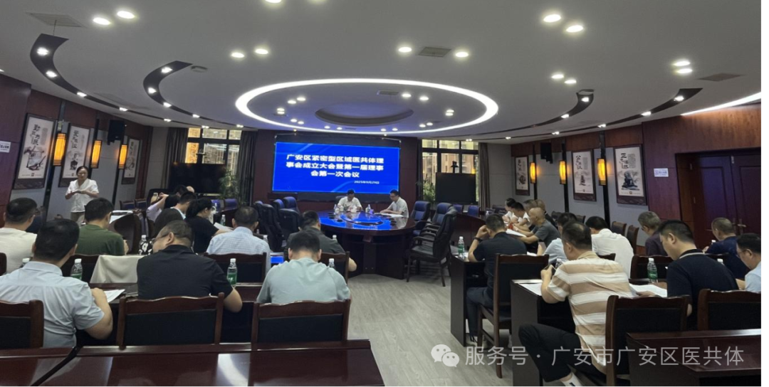 9月29日下午,广安区紧密型区域医共体理事会成立大会暨第一届理事会第一次会议在广安区卫生健康局410会议室召开。广安区卫生健康局在家领导、各股室负责人和25家理事会会员单位代表参加了本次会议。