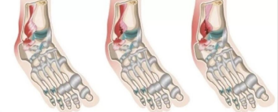 III度:疼痛剧烈,肿胀、淤伤明显且范围广,韧带完全断裂,踝关节明显不稳定,运动要求高者或以出现慢性踝关节不稳定者需要手术治疗。