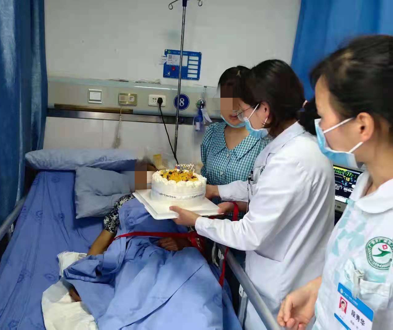 胡婆婆因言语障碍伴右侧肢体无力于5月11日入院,经诊断是大面积脑梗塞长期卧床,翻身需要家人帮助,病情危重,患者虽然能听懂家人谈话,但是自己却说不出来,右侧上下肢瘫痪,且合并脑卒中后轻度抑郁,情绪低落,不思饮食,特别需要关心和关爱。当晚值班医生胡珍珠在了解到是胡婆婆八十大寿后,当即和值班护士一同为老人定了一个生日蛋糕,为老人庆祝生日。“真的很感谢你们,我奶奶很久没有这么开心过了。”胡婆婆的孙女说道。而后,大家一起开心的吃着蛋糕,整个病房洋溢着喜悦和幸福。小小的蛋糕,大大的关爱。医护人员让患者感受到安全、尊重和关爱的同时,也帮助患者树立了战胜疾病的信心。正如主治医师胡珍珠所说:“作为医务工作者,给病人的不仅是对身体的治疗,还有发自内心的人文关怀,为患者过生日,也是提升医疗服务质量的一小步。”(胡珍珠 李欣蔚)