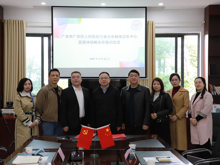 按照“大卫生、大健康、一体化”的发展理念,渝广双方全面落实健康中国行动,携手融入成渝地区双城经济圈建设,推动渝广精神卫生一体化发展。4月21日,广安区人民医院党委书记、院长王月成带队赴重庆市精神卫生中心洽谈医疗联合体战略合作协议事宜,双方就战略合作协议达成一致意见,现场签定了《医疗联合体战略合作协议》。