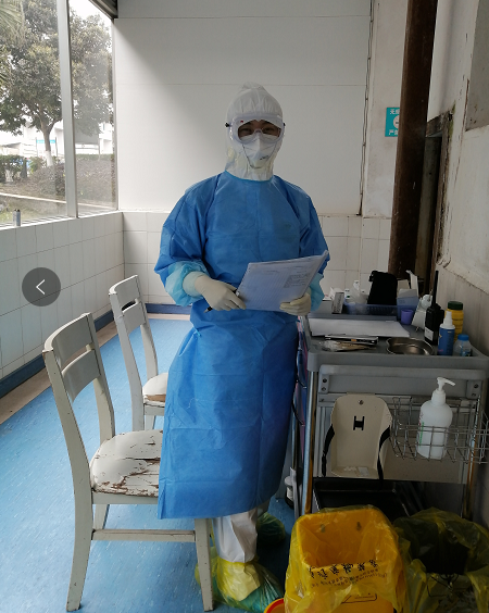 沐浴阳光,思绪万千。2月5日也是这个时间,我正在病房为新人病人铺床,接到了我的请战申请医院同意了,我有幸被医院派遣至广安市人民医院增援,参加新型冠状病毒感染肺炎抗疫一线的护理工作。带着医院的重托、科主任加油鼓劲的拥抱、护士长温暖的嘱咐、姐妹们”必须平安归来”的命令,火速回家收拾行李去市人民医院报到,拖着行李箱站在大街上,不见一车不见一人的大街是那么的空旷寂静,在我感觉有点冷的时候,手机提示有滴滴师傅接我的单了,师傅见我终点是医院,就先问了我去医院做什么,我说我是护士,去市人民医院支援的。师傅一听,提前点了结束行程,敞开的车窗冷风猛灌而入,可我却倍感温暖,下车的时候,师傅:辛苦了,加油!让我逆风向前的脚步更加的坚定!